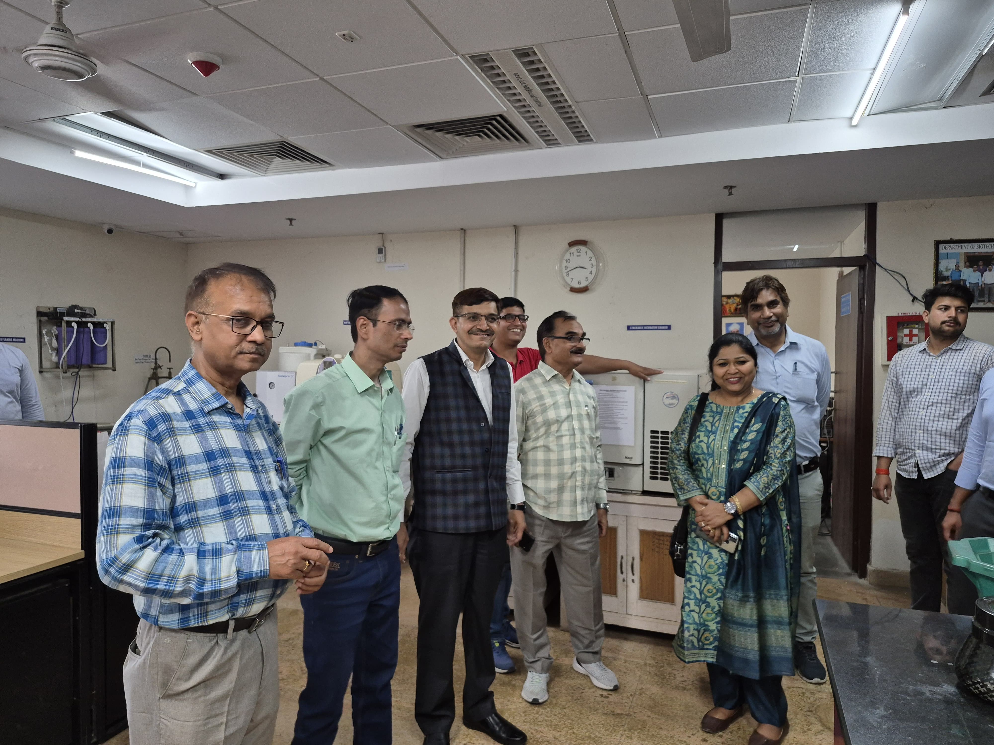 Dr. Vinita Chaudhary suggested to associate with industry and skill experts and add/ align courses accordingly. Industrial expert, Skill Expert and Academic expert suggested to modify the course content and include skill-based hand on training, AI & Machine learning application in Biotechnology courses, sending students to the industries for summer training/internship, besides exploring collaboration with foreign institutions. Mentor from the industry and skill institution should be made part of Mentor-Mentee for better training and research outcome. Industry Expert and Skill experts agreed to associate with these programme and explore to signing MoU to facilitate and strengthen this association. Later on the committee interacted with MSc students admitted through GAT-B score and visited the laboratory. Overall committee members specially experts were satisfied with the progress of the teaching, clarity of students about programme, and future of biotechnology. Dr. Pratishtha Sonker, Assistant Professor, Department of Biotechnology delivered vote of thanks. Programme ended with national anthem.