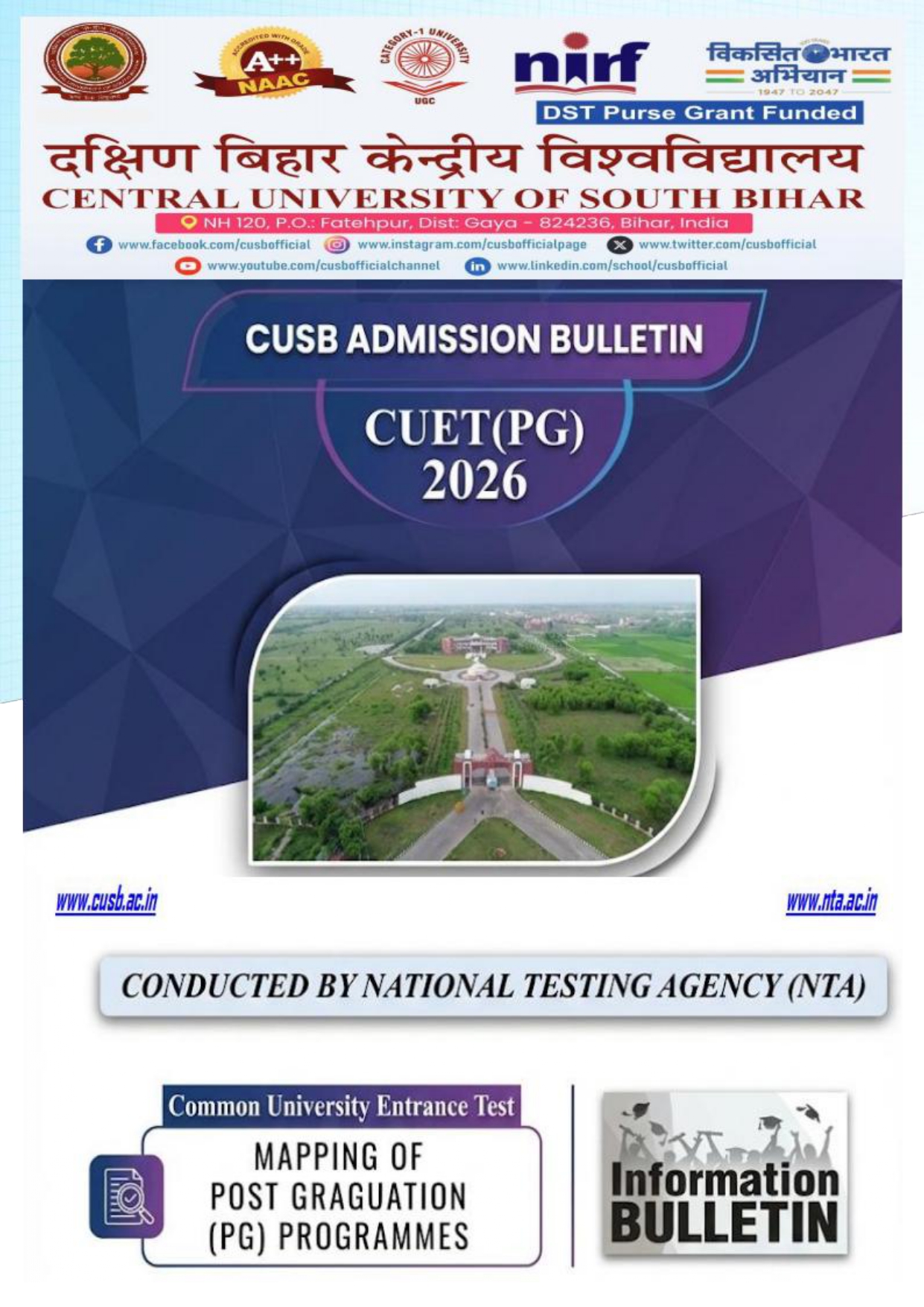 CUSB Admission Bulletin-2026