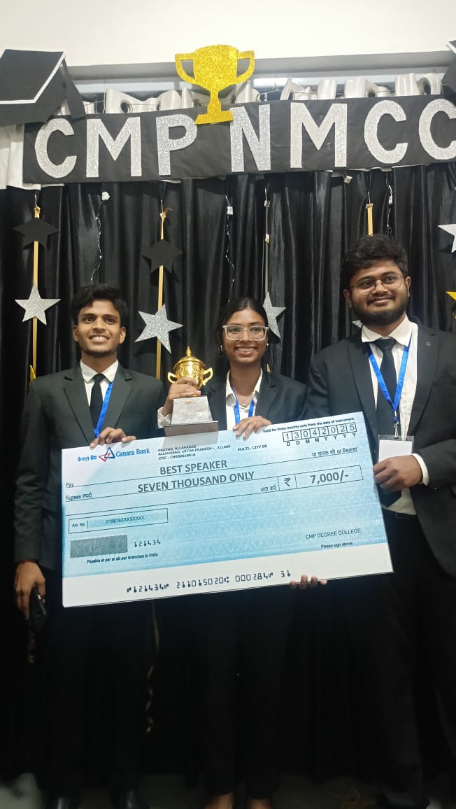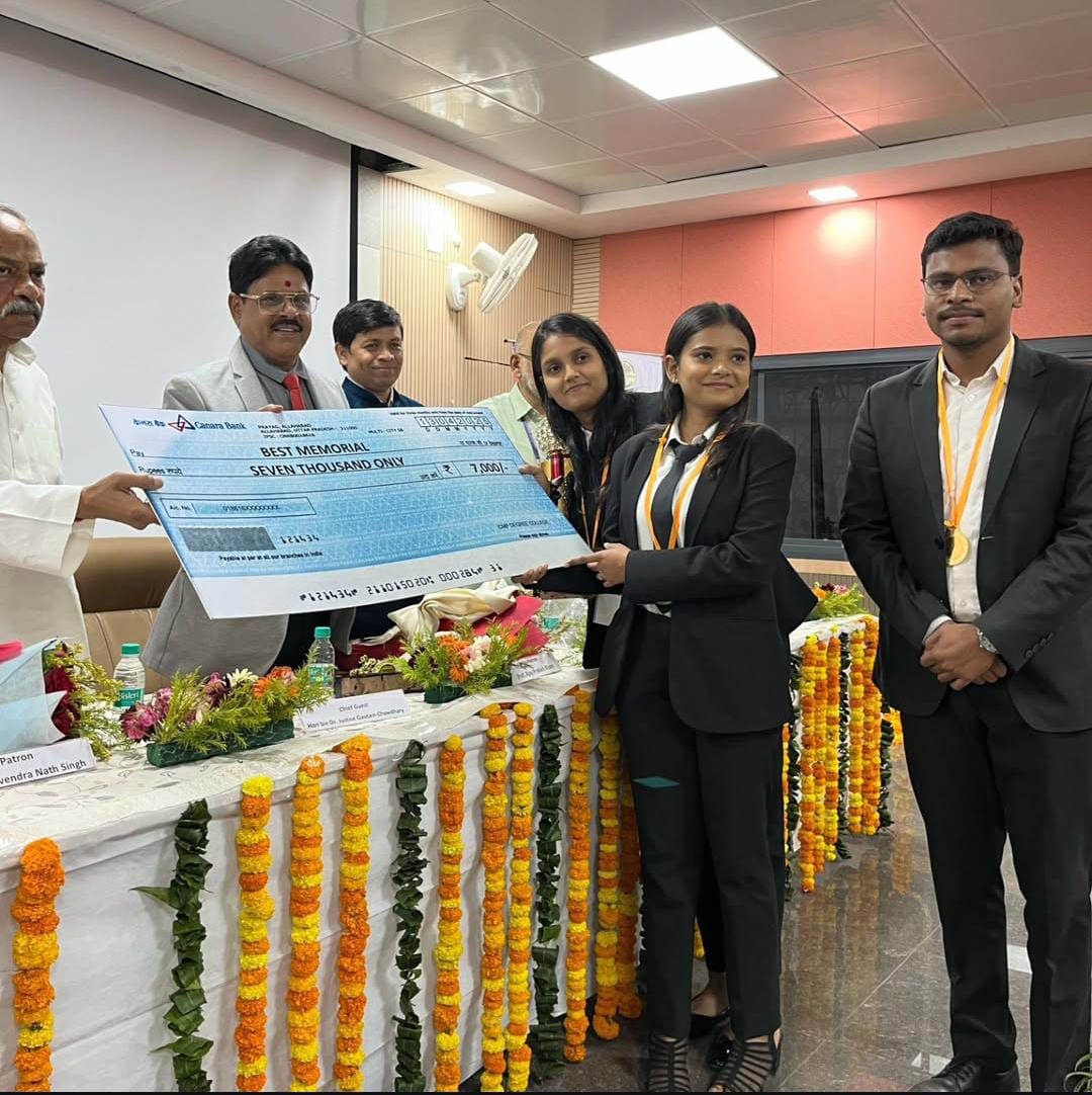 The team of BA LLB (Hons) students of Central University of South Bihar (CUSB) has won the title of Best Memorial Drafting and Best Speaker in the "First CMP National Moot Court Competition, 2025" organized by Chaudhary Mahadev Prasad Mahavidyalaya, Prayagraj (Uttar Pradesh) on April 13, 2025. On winning the Best Memorial title, the team of Smriti Sharma, Ananya Kumari and Premananda Kumar was given a trophy along with a cash prize of Rs. 7,000 and a certificate. Aastha Gupta was given a trophy and a certificate along with a cash prize of Rs. 7000 for the best speaker. Vice Chancellor Prof Kameshwar Nath Singh and Registrar Prof Narendra Kumar Rana have congratulated and wished the members of the winning team on this achievement.