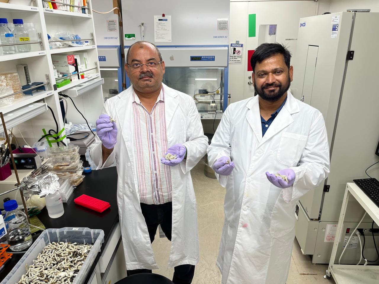 Prof. Rizwanul Haque, Department of Biotechnology, Dean School of Earth, Biological and Environmental Sciences and Dr. Jawaid Ahsan, Assistant Professor, Department of Biotechnology, Central University of South Bihar (CUSB) were invited by Teikyo University, Tokyo, Japan to visit the laboratory of Dr. Atsushi Miyashita, Senior Researcher at the Antifungal Immunobiology Lab, Institute of Medical Mycology, Teikyo University, Tokyo, Japan for research collaboration, formalization of the Memorandum of Understanding (MoU), aiming for internationalization and globalization of CUSB. Prof. Rizwan has vast experience in the field of immunology, cancer biology, stem cell biology using in vitro and in vivo models, and Dr. Jawaid is a neuroscientist working in the field of neurotoxicity, learning and memory using the fruit fly Drosophila as model system. During the visit, Prof. Rizwan and Dr. Jawaid learned the techniques of silkworm culture in laboratory, that will help in setting up the silkworm research facility at CUSB for collaborative research with Teikyo University involving Japanese Government International Research Grant.